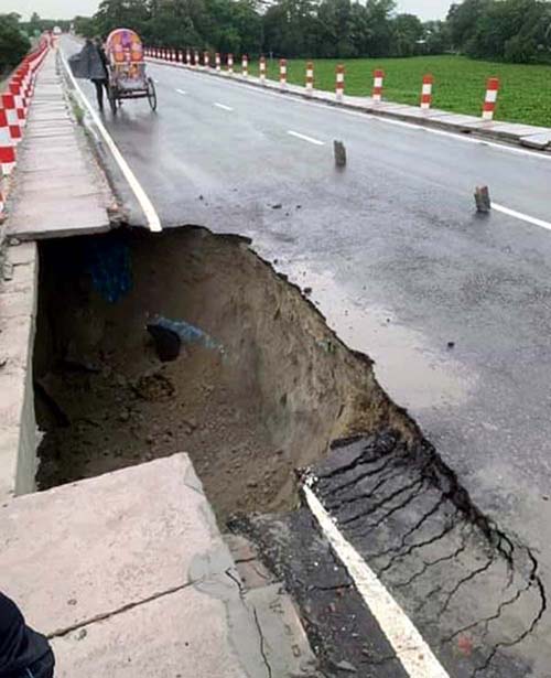 সরেজমিনে দেখা যায়, সেতুটির সংযোগ-সড়কের উত্তর পাশের একটি অংশ ধসে পড়েছে। সেখানে তৈরি হয়েছে একটি বিরাট আয়তাকার গর্ত। ওই গর্তের পাশ দিয়েই ঝুঁকি নিয়ে চলছে সিএনজিচালিত অটোরিকশা, মাইক্রোবাস, অ্যাম্বুলেন্স, বাস, ট্রাক, পিকআপ ভ্যান ও ইজিবাইকসহ অন্যান্য যানবাহন। ওই অংশের পাশ দিয়ে চলাচলের সময় দুর্ঘটনা ও জীবনহানির ভয়ে যাত্রী ও গাড়িচালকদের চোখেমুখে আতঙ্কের ছাপ বিরাজ করছে। সেতুটির ওপর দিয়ে যানবাহন চলাচলের সংখ্যাও কমে গেছে এতে।