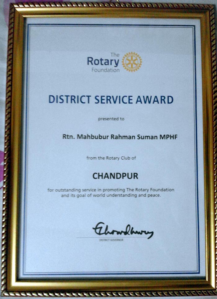 রোটা. মাহবুবুর রহমান সুমন এমপিএইচএফ: ডিরেক্টর (ক্লাব সার্ভিস), চাঁদপুর রোটারী ক্লাব।