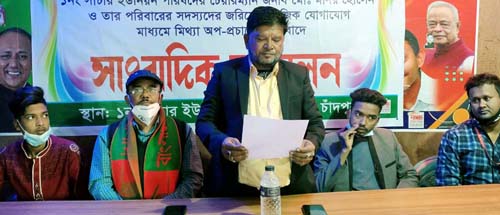 চেয়ারম্যানের বিরুদ্ধে মিথ্যা অপপ্রচারমূলক কথা বলিয়ে তা সামাজিক যোগাযোগ মাধ্যম ফেসবুকে প্রচারের প্রতিবাদে সংবাদ সম্মেলন অনুষ্ঠিত হয়েছে। বুধবার (৩ ফেব্রুয়ারি) উপজেলার সাচার আওয়ামী লীগ দলীয় কার্যালয়ে কচুয়া প্রেসক্লাবের সভাপতি আলমগীর তালুকদারের সভাপতিত্বে লিখিত বক্তব্য পাঠ করেন ইউপি চেয়ারম্যান ও ইউনিয়ন আওয়ামী লীগের সাধারণ সম্পাদক মো. মনির হোসেন।