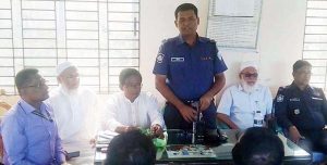 তিনি তার বক্তব্যে বলেন, চাঁদপুর জেলার মানুষ শান্তিপ্রিয়। আমি অনেক জেলাতে চাকরি করেছি। সেসব স্থানে আসামি আটক করা হলে অনেক তদবির ও ফোন আসতো। কিন্তু চাঁদপুরে কোন আসামি আটক করলে ছাড়িয়ে নেয়ার জন্য ফোন আসে না। চাঁদপুরে কমিউনিটি পুলিশের সকল অঞ্চলে ১শ’ ২৭ জন টহলসদস্য শহরবাসীকে নিরাপত্তা দিয়ে থাকে। তাই আমরা গর্ব করে বলতে পারি দিনের চাঁদপুরের চেয়ে রাতে চাঁদপুর অনেক নিরাপদ। এখানে অনেক সমস্যা থাকতে পারে। সেই সমস্যাগুলো আমাদের জানান না। দর্জি ঘাট এলাকার এই রেল লাইন দিয়ে স্কুল-কলেজের শিক্ষার্থীরা চলাফেরা করে। তারা খনিক সময়ের জন্য দাঁড়ালেও আবার চলে যায়। কিন্তু বহিরাগতরা এখানে দীর্ঘ সময় আড্ডা দিয়ে থাকে। চাঁদপুর শহরে কিশোর অপরাধ দমন করা হয়েছে। মাদক ও কিশোর গ্যাং আমরা শূন্যের কোটায় আনতে চাই। তার জন্য আপনাদের সহযোগিতা পেলে তা শূন্যের কোটায় আনা সম্ভব।