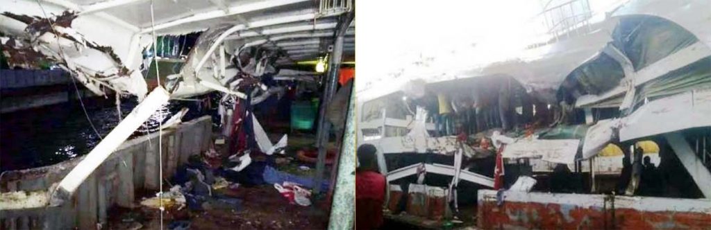 জানা গেছে, রোববার রাত ৯টার দিকে বরিশাল থেকে ৭শ’ যাত্রী নিয়ে ঢাকার উদ্দেশে ছেড়ে আসে কীর্তনখোলা-১০ নামে একটি লঞ্চ। লঞ্চটি চাঁদপুরের কাছাকাছি পৌঁছালে ওই এলাকায় ঘন কুয়াশার কারণে একটি চরে আটকে যায়। ওই সময় ফারহান-৯ নামে একটি লঞ্চ কীর্তনখোলা-১০ কে সজোরে ধাক্কা দেয়। এতে কীর্তনখোলা-১০ লঞ্চের ব্যাপক ক্ষয়ক্ষতি হয় এবং লঞ্চে ঘুমিয়ে থাকা মা ও তার সন্তান নিহত হন।