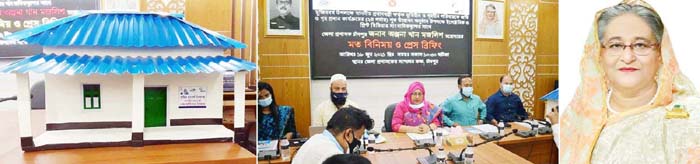 মতবিনিময় ও প্রেস ব্রিফিংয়ে জেলার নির্মিত ঘরের ডকুমেন্টারি উপস্থাপন করেন অতিরিক্ত জেলা প্রশাসক (রাজস্ব) মো. দাউদ হোসেন চৌধুরী।