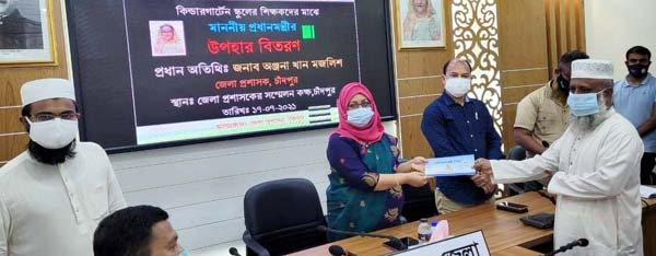 শিক্ষকদের হাতে প্রধানমন্ত্রীর উপহার আর্থিক সহায়তা তুলে দেন জেলা প্রশাসক বেগম অঞ্জনা খান মজলিশ।