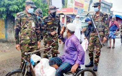 করোনাভাইরাসের সংক্রমণ প্রতিরোধে সরকার নির্দেশিত চলমান লকডউন বাস্তবায়নে কাজ করে যাচ্ছে বাংলাদেশ সেনাবাহিনী। জনগণকে স্বাস্থ্য সচেতনার পাশাপাশি লকডাউনকালীন সময়ে কর্মহীন অসহায় মানুষদের খাদ্য সামগ্রী প্রদান করেছে তারা।