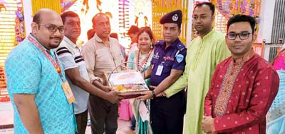 শুভেচ্ছা উপহার বিতরণকালে জেলা পুলিশের উর্ধ্বতন কর্মকর্তা ও শারদীয় দুর্গা পূজা উদযাপনের নেতৃবৃন্দসহ স¤প্রীতি কমিটির সদস্যরা উপস্থিত ছিলেন।