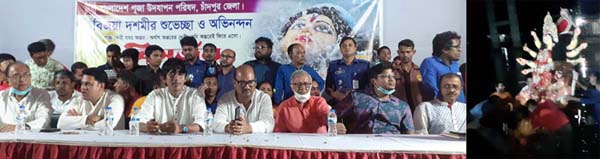 বুধবার সকালে দেবী দুর্গার দশমী বিহিত পূজা অনুষ্ঠিত হয়। এ দিন সকাল থেকে ভক্তরা দশমী পূজায় মিলিত হয়। হিন্দু ধর্মাবলম্বীদের ঘরে ঘরে একেবারে ছোট মাছ পুঁটি দিয়ে দশমী যাত্রা করা হয়। শুধু তাই নয় ঘরে ঘরে ভাল ভাল রান্নার ও আয়োজন করা হয়। দুপুরের পর থেকে সনাতনী নারীরা দেবী দুর্গা মায়ের চরনে তেল-সিঁদুর দিতে ব্যস্ত সময় পার করে। মায়ের পাশাপাশি নিজেরাও তেলে সিঁদুর মিশ্রন করে একে অপরকে রাঙিয়ে তুলে। গ্রামাঞ্চলের ম-পগুলোতে দেবী দুর্গাকে বিসর্জন দেয়ার আগে পুরুষরা কাঁদা মাটির খেলায় মেতে উঠে। এমন দৃশ্য চোখে পরে চাঁদপুর শহরের রামকৃষ্ণ আশ্রম ও মিশনে। এ খেলা শেষে আশ্রমের পুকুরেই দেবী দুর্গাকে বিসর্জন দেয়া হয়।