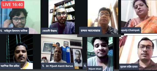 জাতীয় কবি কাজী নজরুল ইসলামের ১২২তম জন্মজয়ন্তী উপলক্ষে সাহিত্য মঞ্চের আয়োজনে আলোচনা সভা অনুষ্ঠিত হয়েছে। গত মঙ্গলবার (২৫ মে) রাত নয়টায় ভার্চুয়াল এই আয়োজনে বাংলা ভাষা ও সাহিত্যের অন্যতম এ প্রাণপুরুষের স্মরণে নজরুল সংগীত পরিবেশন ও কবিতা পাঠ করা হয়।