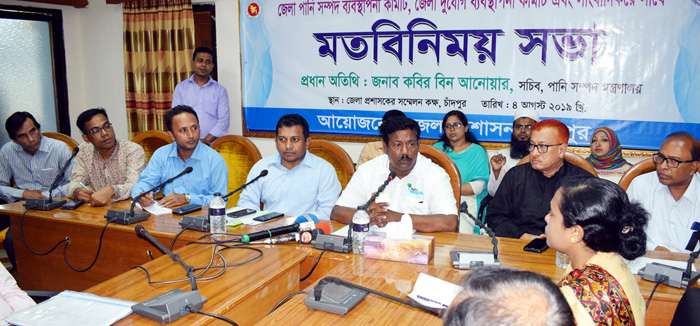 চাঁদপুর জেলা পানিসম্পদ ব্যবস্থাপনা কমিটি, জেলা দুর্যোগ ব্যবস্থাপনা কমিটি এবং সাংবাদিকদের সাথে মতবিনিময় সভা অনুষ্ঠিত হয়েছে। গতকাল রোববার বিকাল সাড়ে ৪টায় চাঁদপুর জেলা প্রশাসকের সম্মেলন কক্ষে সভায় প্রধান অতিথির বক্তব্য রাখেন পানিসম্পদ মন্ত্রণালয়ের সচিব কবির বিন আনোয়ার।