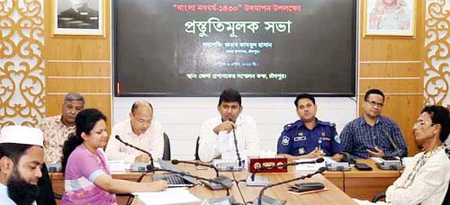 চাঁদপুর জেলা প্রশাসনের আয়োজনে বাংলা নববর্ষ-১৪৩০ বঙ্গাব্দ উদযাপনে প্রস্তুতি সভা অনুষ্ঠিত হয়েছে। বৃহস্পতিবার (৬ এপ্রিল) দুপুরে জেলা প্রশাসক কার্যালয়ের সম্মেলন কক্ষে সভায় সভাপতিত্ব করেন জেলা প্রশাসক কামরুল হাসান।