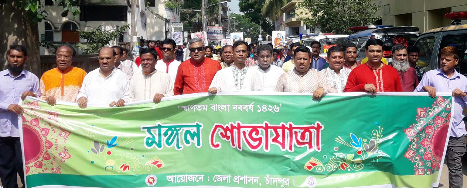 পরে ৮টায় পুলিশ প্রশাসনের উদ্যোগে পুলিশ লাইনে পান্তা ভোজের আয়োজন করা হয়। সকাল সোয়া ৯টায় জেলা প্রশাসনের উদ্যোগে একটি কালারফুল বর্ণাঢ্য মঙ্গল শোভাযাত্রা বের হয়। র্যালিতে জেলা প্রশাসক মো. মাজেদুর রহমান খান, পুলিশ সুপার মো. জিহাদুল কবির, জেলা আওয়ামী লীগের সভাপতি ও পৌর মেয়র নাছির উদ্দিন আহমেদ, স্বাধীনতা পদক প্রাপ্ত নারী মুক্তিযোদ্ধা ডা. সৈয়দা বদরুন নাহার চৌধুরীর নেতৃত্বে শহরের সকল সরকারি-বেরসরকারি প্রতিষ্ঠান, স্কুল কলেজ, সাংষ্কৃতিক সংগঠন বর্ণিল সাঁজে সেঁজে অংশ গ্রহন করে। শোভাযাত্রাটি হাসান আলী উচ্চ বিদ্যালয় মাঠ থেকে শুরু হয়ে মূল আয়োজন স্থল চাঁদপুর শহরের প্রেসক্লাব সংলগ্ন ডাকাতিয়া নদীর পাড়ে গিয়ে শেষ হয়।