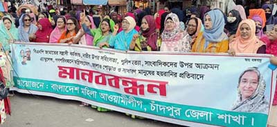 চাঁদপুরে মহিলা আ.লীগের মানববন্ধন