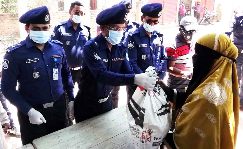 চাঁদপুরে করোনাভাইরাসের কারণে ঘরবন্ধি অসহায় গরিবদের মাঝে পণ্যসামগ্রী বিতরণ করেছে জেলা পুলিশ। গতকাল সোমবার সকালে শহরের কোড়ালিয়া সরকারি পৌর প্রাথমিক বিদ্যালয় মাঠে শতাধিক পরিবারের মাঝে খাদ্য সামগ্রী বিতরণ করেন পুলিশ সুপার মো. মাহবুবুর রহমান।