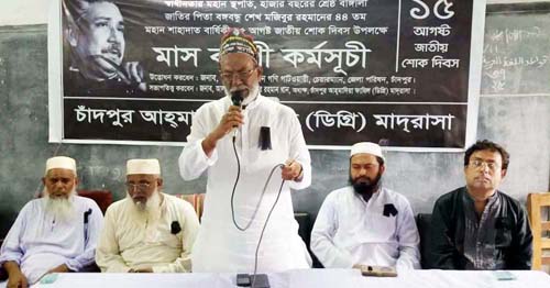 জাতির পিতা বঙ্গবন্ধু শেখ মুজিবুর রহমানের ৪৪তম শাহাদাতবার্ষিকী ও জাতীয় শোক দিবসে চাঁদপুর আহমাদিয়া ফাজিল মাদ্রাসায় আয়োজিত আলোচনা সভা ও মিলাদ অনুষ্ঠানে প্রধান অতিথির বক্তব্যে তিনি একথা বলেন।