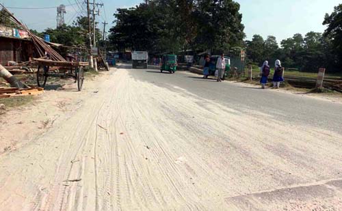 গতকাল বৃহস্পতিবার সড়কটি ঘুরে দেখা গেছে, সড়ক এবং সড়কের দুই পাশে বালির স্তূপ পড়ে আছে। এর কারণ হিসেবে পথচারী, ব্যবসায়ী এবং স্থানীয় লোকজন সড়কে ওভারলোডেড এবং ঢাকনাহীন বালুবাহী ট্রাক চলাচল ও মহাসড়কের পাশে থাকা বালুমহালকে দায়ী করছেন। বিষয়টি সমাধানের জন্য সংশ্লিষ্ট কর্তৃপক্ষ ও প্রশাসনের হস্তক্ষেপ কামনা করছেন ভুক্তভোগী জনসাধারণ।