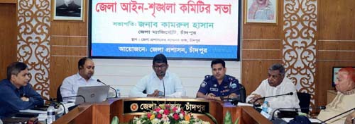 চাঁদপুর জেলা আইন-শৃঙ্খলা কমিটির সভা অনুষ্ঠিত হয়েছে। রোববার (১২ মে) সকালে জেলা প্রশাসকের সম্মেলন কক্ষে সভায় সভাপতিত্ব করেন জেলা প্রশাসক কামরুল হাসান।