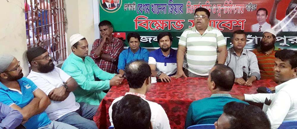 বিএনপি চেয়ারপার্সন, সাবেক ৩ বারের প্রধানমন্ত্রী দেশনেত্রী বেগম খালেদা জিয়ার নিঃশর্ত মুক্তি ও সু-চিকিৎসার দাবিতে বিক্ষোভ সমাবেশ অনুষ্ঠিত হয়েছে। গতকাল শনিবার বিকেলে জেলা বিএনপি কার্যালয়ে চাঁদপুর জেলা যুবদলের আয়োজন এ সমাবেশ অনুষ্ঠিত হয়।