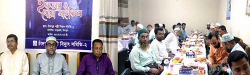 চাঁদপুর পল্লী বিদ্যুৎ সমিতি-২ ইফতার ও দোয়া মাহফিল অনুষ্ঠিত হয়েছে। গত মঙ্গলবার রালদিয়াস্থ সমিতির নিজস্ব কার্যালয়ে ইফতার ও দোয়া মাহফিল সম্পন্ন হয়। অনুষ্ঠানে পল্লী বিদ্যুৎ সমিতি-২ এর বোর্ড সভাপতি এমএ মালেক, জেনারেল ম্যানেজার দেব কুমার মালো, সমিতির কর্মকর্তা-কর্মচারী, বোর্ড সদস্যসহ বিভিন্ন শ্রেণি-পেশার মানুষ উপস্থিত ছিলেন।