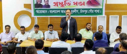 বাংলাদেশ আওয়ামী যুবলীগের ৪৯তম প্রতিষ্ঠাবার্ষিকী উদযাপন উপলক্ষে চাঁদপুর পৌর যুবলীগের প্রস্তুতি সভা অনুষ্ঠিত হয়েছে। বুধবার (২৪ নভেম্বর) বিকেল ৪টায় জেলা আওয়ামী লীগ কার্যালয়ে অনুষ্ঠিত প্রস্তুতি সভায় প্রধান অতিথির বক্তব্য রাখেন জেলা যুবলীগের যুগ্ম-আহ্বায়ক ও পৌরসভার প্যানেল মেয়র মোহাম্মদ আলী মাঝি।
