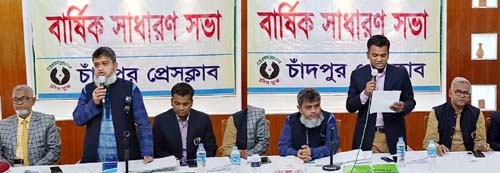 ঐতিহ্যবাহী চাঁদপুর প্রেসক্লাবের বার্ষিক সাধারণ সভা অনুষ্ঠিত হয়েছে। শনিবার (৩০ ডিসেম্বর) চাঁদপুর প্রেসক্লাব মিলনায়তনে অত্যন্ত সৌহার্দ্যপূর্ণ পরিবেশে সভাটি শেষ হয়। সভায় আগামি ২০২৪ সালের নবাগত কার্যকরি কমিটি ঘোষণা করা হয়। প্রেসক্লাব সভাপতি এএইচএম আহসান উল্লাহর সভাপতিত্বে ও সাধারণ সম্পাদক আল ইমরান শোভনের পরিচালনায় অনুষ্ঠানের শুরুতে পবিত্র কোরআন তেলাওয়াত করেন প্রেসক্লাবের সম্মানিত সদস্য মাওলানা এসএম আন্ওয়ারুল করিম।