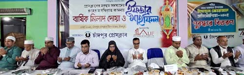 চাঁদপুর প্রেসক্লাবের আয়োজনে প্রেসক্লাবের মরহুম সদস্যদের রুহের মাগফিরাত কামনায় বার্ষিক মিলাদ দোয়া ও ইফতার মাহফিল অনুষ্ঠিত হয়েছে। গত মঙ্গলবার (৪ মার্চ) বিকেলে প্রেসক্লাব মিলনায়তনে এই দোয়া ও ইফতার মাহফিল অনুষ্ঠিত হয়। একই স্থানে গত ১ মার্চ প্রেসক্লাবের আয়োজনে পবিত্র মাহে রমাদান উপলক্ষে হিফজুল কোরআন প্রতিযোগিতায় দুটি গ্রুপে অংশগ্রহণকারী বিজয়ী ১০জন হাফেজের মাঝে পুরস্কার বিতরণ করা হয়। পুরস্কার বিতরণ করেন আমন্ত্রিত অতিথিরা।