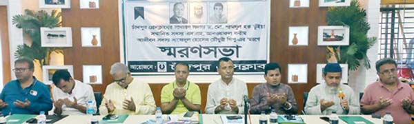 চাঁদপুর প্রেসক্লাবের সাধারণ সদস্য ড. মো. শামসুল হক ভূঁইয়া, সম্মানিত সদস্য এসএম আনওয়ারুল করীম ও আজীবন সদস্য সাজেদুল হোসেন চৌধুরী দিপুর স্মরণে স্মরণ সভা অনুষ্ঠিত হয়েছে। শনিবার (৬ জুলাই) দুপুরে চাঁদপুর প্রেসক্লাব মিলনায়তনে এ সভা অনুষ্ঠিত হয়। তাদের আত্মার মাগফিরাত কামনায় দোয়া ও মোনাজাত পরিচালনা করেন চাঁদপুর প্রেসক্লাবের সাবেক সভাপতি এএইচএম আহসান উল্লাহ।