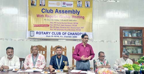 ঐতিহ্যবাহী চাঁদপুর রোটারী ক্লাবের ২০২২-২৩ রোটারী বর্ষের প্রথম অ্যাসেম্বলি, ৫ম সেশন সভা ও ক্লাবের ২৫০৮তম সভা গত শুক্রবার (২২ জুলাই) সন্ধ্যা সাড়ে ৭টায় অনুষ্ঠিত হয়। অ্যাসেম্বলিতে ট্রেইনার হিসেবে সেশন পরিচালনা করেন রোটা. পিপি তমাল কুমার ঘোষ, রোটা. পিপি অধ্যাপক জাকির হোসেন ও রোটা. পিপি অ্যাড. সাইয়েদুল ইসলাম।