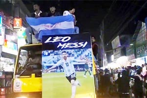 এসব ফুটবল ভক্তদের অনেকেই আর্জেন্টিনার নীল-সাদা জার্সি এবং লিওনেল মেসির ১০ নাম্বার জার্সি পরে খেলা দেখায় অংশ নেন।