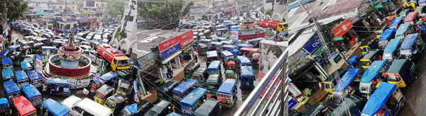 যানজটের শহর এখন চাঁদপুর। এটা এখন নিয়তি হিসেবেই মেনে নিয়েছে শহরবাসী। ছোট্ট এই শহরে প্রতিনিয়ত যে পরিমাণ সিএনজি, অটোবাইক আর ব্যাটারীচালিত মোটর রিক্সার চাপ বাড়ছে তাতে যানজট তো কমবেই না বরং বাড়বে তাই বলছে এখন ভুক্তভোগীরা। তবে সামনে যে আরো তীব্র আকারে যানবাহনের চাপ যে ধারণ করবে তা হলফ করেই বলছেন এই শহরের বাসিন্দারা।