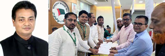 রোববার (১৯ নভেম্বর) দুপুরে রাজধানীর বঙ্গবন্ধু অ্যাভিনিউর আওয়ামী লীগের কেন্দ্রিয় কার্যালয় থেকে মনোনয়ন ফরম সংগ্রহ করেন তাঁর প্রতিনিধি বাংলাদেশ আওয়ামী লীগের বন ও পরিবেশ বিষয়ক উপ-কমিটির সদস্য আতিকুর রহমান শিমুল ও ছেংগারচর পৌর ছাত্রলীগের সাবেক সাধারণ সম্পাদক আলী নূর বেপারী।