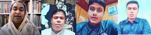 ভার্চুয়ালে আলোচক হিসেবে বক্তব্য রাখেন বাংলাদেশ ছাত্রলীগের কেন্দ্রীয় কমিটির সভাপতি আল নাহিয়ান খান জয় ও সাধারণ সম্পাদক লেখক ভট্টাচার্য।