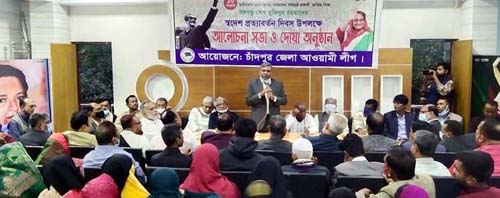 বিকেলে চাঁদপুর জেলা আওয়ামী লীগ কার্যালয়ে আলোচনা সভায় সভাপতিত্ব করেন জেলা আওয়ামী লীগের সভাপতি নাছির উদ্দীন আহমেদ। তিনি তার বক্তব্যে বলেন, ১৯৭২ সালের এই দিনে দীর্ঘ ৯ মাস কারাভোগের পর পাকিস্তানের বন্দিদশা থেকে মুক্তি পেয়ে বঙ্গবন্ধু শেখ মুজিবুর রহমানের সদ্যস্বাধীন বাংলাদেশের মাটিতে প্রত্যাবর্তন করেন। তিনি ছাত্র জীবন থেকে দুঃশাসন অপশাসনের বিরুদ্ধে প্রতিবাদী কণ্ঠস্বর ছিলেন। যার ফলে তিনি অসংখ্যবার কারাভোগ করেছেন। বঙ্গবন্ধুর জন্ম না হলে বাঙালি জাতির স্বাধীনতার সুফল ভোগ করতে পারতেন না। একটি সুখী, সমৃদ্ধ ও স¤প্রীতির বাংলাদেশ বিনির্মাণের লক্ষ্যে তিনি আমাদের স্বাধীনতা এনে দিয়েছেন।