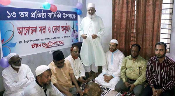 দৈনিক চাঁদপুর দিগন্তের ১৩তম বর্ষপূর্তি ও ১৪তম বর্ষে পদার্পণ উপলক্ষে আলোচনা সভা ও দোয়া অনুষ্ঠান গতকাল শুক্রবার বিকাল ৪টায় চাঁদপুর দিগন্ত কার্যালয়ে অনুষ্ঠিত হয়েছে।
