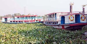 বাল্কহেড শ্রমিক রহিম জানান, প্রায় একমাস ধরে বালুবাহী বাল্কহেড কচুরীপানায় আটকে আছে ধনাগোদা স্কুলের কাছে।