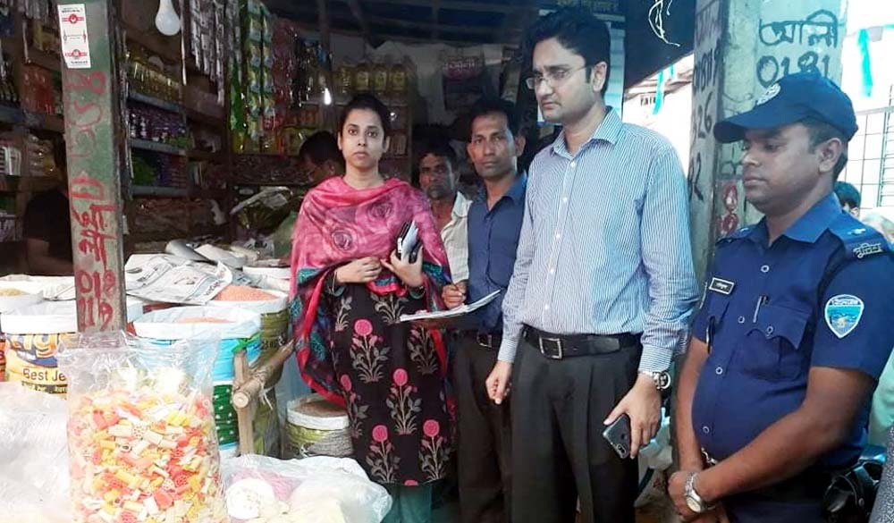 এর মধ্যে শহীদ স্টোর থেকে ১৫টি বাঘাবাড়ি-ঘি নগদ ১ হাজার টাকা, মতিন স্টোর থেকে ২১টি বাঘাবাড়ি-ঘি, নগদ ১ হাজার টাকা, আলী স্টোর থেকে ৩টি বাঘাবাড়ি-ঘি, রং মেশানো চিপস ও নগদ ১ হাজার টাকা এবং সাদ্দাম স্টোর থেকে ৩টি বাঘাবাড়ি-ঘি, ক্যামিকেলযুক্ত আইসক্রীম, খোলা আচার ও নগদ ৫শ’ টাকা আদায় করা হয় এবং জব্দকৃত নিষিদ্ধ পণ্য বিনষ্ট করা হয়।