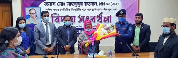 চাঁদপুর জেলা প্রশাসনের পক্ষ থেকে পুলিশ সুপার (পদোন্নতিপ্রাপ্ত অতিরিক্ত ডিআইজি, ঢাকা রেঞ্জ) মো. মাহবুবুর রহমানকে বিদায়ী