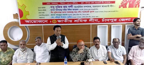 চাঁদপুর জেলা শ্রমিক লীগের সভাপতি মাহবুবুর রহমানের সভাপতিত্বে বিশেষ অতিথির বক্তব্য রাখেন জেলা আওয়ামী লীগের সভাপতি আলহাজ নাছির উদ্দিন আহমেদ। প্রধান বক্তার বক্তব্য রাখেন জেলা আওয়ামী লীগের সাধারণ সম্পাদক মুক্তিযোদ্ধা আবু নঈম পাটওয়ারী দুলাল।
