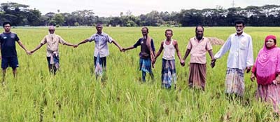 বছরে দু’টি ফসল উৎপাদন হয়। এই উৎপাদিত ধান দিয়ে সংসার চলে এলাকার শতাধিক কৃষক পরিবারের সংসার। কিন্তু ৪০ একর ফসলি জমি ঘিরে মৎস্য চাষের জন্য স্থানীয় একটি প্রভাবশালী পরিবার উঠেপড়ে লেগেছে। ঈদের আগে মাটি কাটার মেশিন ভেকু নিয়ে আসলেও কৃষকদের বাঁধার মুখে আপাতত ভেকু ফিরে গেলেও যেভাবেই হোক ফসলি জমিতে মাছের খামার গড়ে তুলবেন- এমন হুমকিতে আতংকিত কৃষকরা। বাধ্য হয়ে ফসলি জমি রক্ষার জন্য গত সোমবার উপজেলা নির্বাহী কর্মকর্তা বরাবর গণস্বাক্ষরযুক্ত আবেদন করেছে স্থানীয় কৃষকরা। ঘটনাটি ফরিদগঞ্জ উপজেলার গোবিন্দপুর দক্ষিণ ইউনিয়নের।