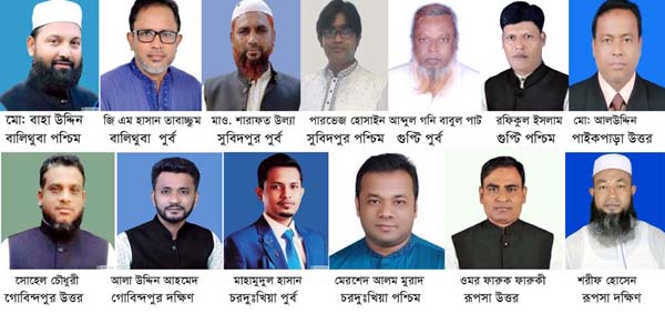 দলীয় মনোনয়নপ্রাপ্তরা হলেন- বালিথুবা পশ্চিম ইউনিয়নে যুবলীগের সাবেক আহ্বায়ক মো. বাহা উদ্দিন, বালিথুবা পূর্ব ইউনিয়নে উপজেলা আওয়ামী লীগের সাবেক সদস্য জি এম হাসান তাবাচ্ছুম, সুবিদপুর পূর্ব ইউনিয়নে বর্তমান চেয়ারম্যান ও পীরের বংশধর মাও. শারাফত উল্ল্যা, সুবিদপুর পশ্চিম ইউনিয়নে উপজেলা ছাত্রলীগের সাবেক সাংগঠনিক সম্পাদক পারভেজ হোসাইন, গুপ্টি পূর্ব ইউনিয়নে সাবেক ইউনিয়ন আওয়ামী লীগের সভাপতি ও বর্তমান চেয়ারম্যান আব্দুল গণি বাবুল পাটওয়ারী, গুপ্টি পশ্চিম ইউনিয়নে ইউনিয়ন আওয়ামী লীগের সাবেক সহ-সভাপতি রফিকুল ইসলাম, পাইকপাড়া উত্তর ইউনিয়নে আওয়ামী লীগ নেতা মোহাম্মদ আলাউদ্দিন, গোবিন্দপুর উত্তর ইউনিয়নে ইউনিয়ন আওয়ামী লীগের সাধারণ সম্পাদক ও বর্তমান চেয়ারম্যান সোহেল চৌধুরী, গোবিন্দপুর দক্ষিণ ইউনিয়নে সাবেক ইউপি চেয়ারম্যান খাজা আহমেদ ভূঁইয়ার ছেলে যুবলীগ নেতা আলা উদ্দিন আহমেদ, চরদুঃখিয়া পূর্ব ইউনিয়নে যুবলীগ নেতা মাহমুদুল হাসান মিরাজ, চরদুঃখিয়া পশ্চিম ইউনিয়নে যুবলীগ নেতা মোরশেদ আলম মুরাদ, রূপসা উত্তর ইউনিয়নে উপজেলা আওয়ামী লীগের সাংগঠনিক সম্পাদক ও বর্তমান চেয়ারম্যান ওমর ফারুক ফারুকী এবং রূপসা দক্ষিণ ইউনিয়নে সাবেক ছাত্রলীগ সভাপতি শরীফ হোসেন।