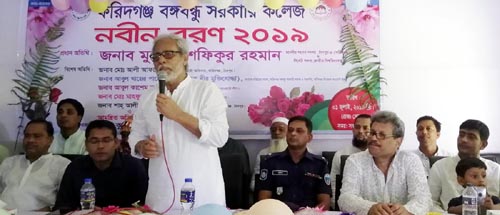 গতকাল সোমবার দুুপুরে ফরিদগঞ্জ বঙ্গবন্ধু সরকারি কলেজে ২০১৯ সালের একাদশ শ্রেণির উদ্বোধনী ক্লাস ও নবীনবরণ অনুষ্ঠানে প্রধান অতিথির বক্তব্য রাখতে গিয়ে তিনি একথা বলেন। কলেজ অধ্যক্ষ কুন্তল কৃষ্ণ নাথের সভাপতিত্বে এসময় অতিথি হিসেবে উপস্থিত ছিলেন উপজেলা নির্বাহী কর্মকর্তা মো. আলী আফরোজ, পৌর মেয়র মাহফুজুল হক, থানার ওসি আবদুর রকিব, জেলা আওয়ামী লীগের ধর্ম বিষয়ক সম্পাদক আবুল কাশেম, আওয়ামী লীগের ত্রাণ ও সমাজকল্যাণ বিষয়ক উপ-কমিটির সদস্য খাজে আহাম্মদ মজুমদার, আওয়ামী লীগ নেতা আমির আজম রেজা, বঙ্গবন্ধু গবেষণা পরিষদের চাঁদপুর জেলা শাখার সাধারণ সম্পাদক কামরুল হাসান সউদ ও কলেজ গভর্নিং বডির সদস্য নাজিম উদ্দিন পাটওয়ারী।