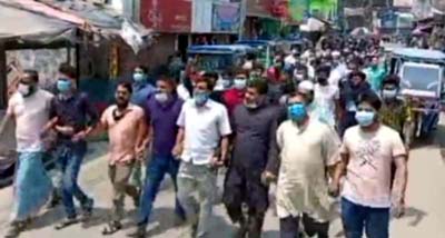 বিক্ষোভ মিছিলে বিভিন্ন মার্কেটের দেড় শতাধিক দোকান, মালিক ও কর্মচারীরা একত্রিত হয়ে বাজারে মিছিল বের করে। মিছিলটিতে ‘স্বাস্থ্যবিধি মানবো, দোকান পাট খুলবো, লকডাউন মানি না’ এ শ্লোগান দিতে দেখা যায় বিক্ষোভকারীদের।
