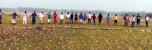চাঁদপুর সদরে কৃষি জমিতে পানি সরবরাহ না করায় ৪০ একর জমি অনাবাদি হয়ে পড়ে আছে। গতকাল শনিবার সকালে সদর উপজেলা বাগাদী ইউনিয়নের ব্রাহ্মণসাখুয়া গিয়ে এমন চিত্র দেখা যায়। গ্রামের বিশাল মাঠ জুড়ে ৪০ একরের উপরে কৃষি জমি রয়েছে। জমিতে পানি সরবরাহের ব্যবস্থা করতে কৃষকেরা হাতে হাত ধরে মানববন্ধনে দাঁড়িয়ে যায়। জমিতে পানি না আসায় কৃষকেরা ধানের চারা রোপণ করতে পারছে না। দ্রুত পানির ব্যবস্থা করতে মানববন্ধনের মাধ্যমে তারা জোর দাবি জানান।