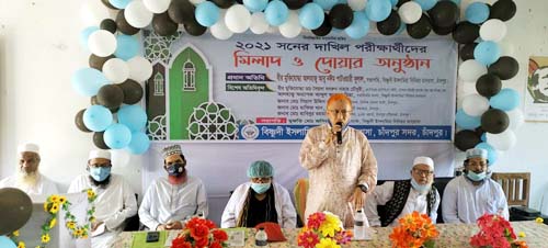 চাঁদপুর শহরের বিষ্ণুদী ইসলামিয়া সিনিয়র মাদ্রাসায় দাখিল পরীক্ষার্থীদের মিলাদ ও দোয়া অনুষ্ঠিত হয়েছে। মঙ্গলবার (৯ নভেম্বর) সকালে মাদ্রাসার হলরুমে দোয়া অনুষ্ঠানে প্রধান অতিথি হিসেবে বক্তব্য রাখেন জেলা আওয়ামী লীগের সাধারণ সম্পাদক ও মাদ্রাসা গভর্নিং বডির সভাপতি মুক্তিযোদ্ধা আবু নঈম পাটওয়ারী দুলাল।