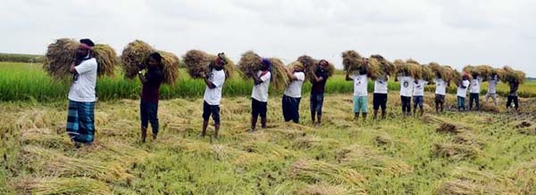 মতলব দক্ষিণ উপজেলার ঘোড়াধারী গ্রামের কৃষক আলম প্রধানের ৪৫ শতাংশ জমির পাকা বোরো ধান কেটে তার বাড়িতে পৌঁছে দিলো ছাত্রলীগ নেতৃবৃন্দ। শুক্রবার (১ মে) সকাল ১০টায় উপজেলা ছাত্রলীগ নেতা সারোয়ার সরকার লিখনের নেতৃত্বে ১৫ জন ছাত্রলীগ নেতাকর্মী ওই কৃষকের জমির ধান কেটে দেয়।