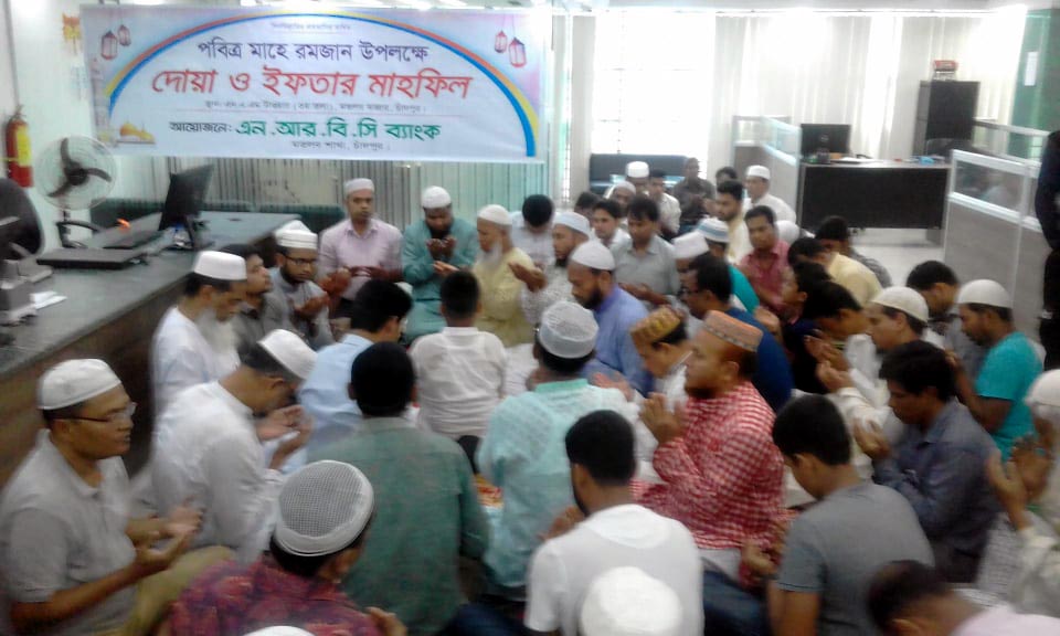 এনআরবিসি ব্যাংক মতলব শাখার আয়োজনে গতকাল মঙ্গলবার বিকেলে দোয়া ও ইফতার মাহ্ফিল অনুষ্ঠিত হয়েছে। এতে সভাপতিত্ব করেন ব্যাংকের মতলব শাখা ব্যাবস্থাপক মো. ফারুক হোসেন ও পরিচালনা করেন ব্যাংকের সেকেন্ড ম্যানেজার মো. মঈন উদ্দিন।