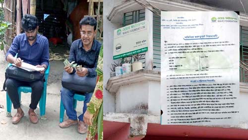 ব্র্র্যাক অফিস রোডের মোশারফ হোসেনের বিল্ডিংয়ের দ্বিতীয় তলায় ওয়েভ ফাউন্ডেশনের অফিস ভাড়া নেন। সাইনবোর্ডও সাঁটানো হয়েছে। এক সপ্তাহ ধরে দুই জন পুরুষ ও এক নারী কর্মচারী বিভিন্ন গ্রামে সদস্য সংগ্রহ শুরু করেন। তাদের কাছ থেকে টাকাও সংগ্রহ করা হয়। বৃহস্পতিবার ঋণ নেয়ার জন্য অফিসে গিয়ে গ্রাহকরা দেখের অফিসে তালা ঝুলছে। কর্মচারীদের ব্যবহৃত মুঠোফোনে কল দিয়েও তাদের পাওয়া যায়নি। প্রতারণার শিকার হয়ে গ্রাহকরা অফিসে ভীড় করে।