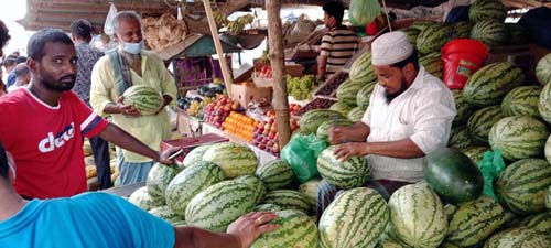 মঙ্গলবার (২৭ এপ্রিল) ছেংগারচর বাজার, কালিপুর বাজার, মোহনপুর বাজার, নতুনবাজারসহ বিভিন্ন জায়গায় ঘুরে দেখা গেছে, তরমুজের দাম আকাশচুম্বী। ছেংগারচর বাজারে একাধিক ফল ব্যবসায়ী তরমুজ বিক্রি করতে বসে আছেন। ৪-৫ কেজি ওজনের একটি তরমুজের দাম হাকেন সাড়ে ৫০০ টাকা। এর চেয়ে বড় সাইজের একটি তরমুজের দাম জিজ্ঞেস করলে ৬০০ টাকা চান।