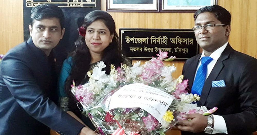 গত বৃহস্পতিবার দুপুরে সদ্য বিদায়ী উপজেলা নির্বাহী কর্মকর্তা শারমিন আক্তার ও সহকরী কমিশনার (ভূমি) আনোয়ার হোসাইন পাটোয়ারী নবাগত ইউএনওকে ফুল দিয়ে বরণ করে নেন। এএম জহিরুল হায়াত ১১ ডিসেম্বর মতলব উত্তর উপজেলা নির্বাহী কর্মকর্তা হিসেবে যোগদান করেছিলেন।