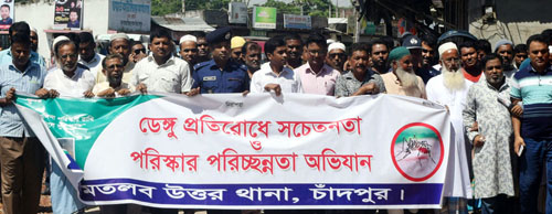 মতলব উত্তর থানা পুলিশের উদ্যোগে ডেঙ্গু প্রতিরোধে সচেতনতামূলক র্যালি ও পথসভা অনুষ্ঠিত হয়েছে। গতকাল মঙ্গলবার সকাল ১০টায় ছেঙ্গারচরে থানার অফিসার ইনচার্জ মো. মিজানুর রহমানের নেতৃত্বে র্যালিটি বের হয়। ছেঙ্গারচর বাজার ও আশপাশের প্রধান প্রধান সড়ক প্রদক্ষিণ করে থানা প্রাঙ্গণে এসে শেষ হয়। পরে এক পথসভা অনুষ্ঠিত হয়েছে।