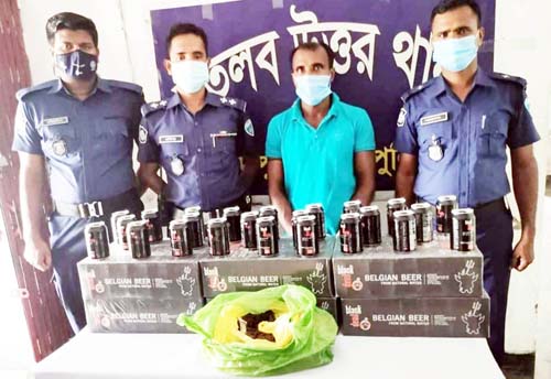 পরে ঐ ঘর তল্লাশি করে বসত ঘরের ভিতর খাটের নিচ থেকে ১৬৮টি বেলজিয়ান বিয়ার ক্যান (যার আনুমানিক মূল্য ১ লক্ষ ৯ হাজার ২০০ টাকা) এবং ৫০০ গ্রাম গাঁজা (যার আনুমানিক মূল্য ১২ হাজার ৫০০ টাকা) উদ্ধার করেন। আসামির বিরুদ্ধে একটি নিয়মিত মাদক মামলা রুজু করা হয়। গত শুক্রবার আটক আসামিকে আদালতে সোপর্দ করা হয়।