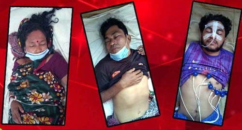 তারা হলেন, দুর্গাপুর গ্রামের শীল বাড়ির খোকন শীল (৪৫), তার স্ত্রী ঝর্ণা শীল (৩৪) ও ছেলে মিঠুন শীল (২০)। তাদের অবস্থা আশংকা জনক বলে জানা গেছে। উন্নত চিকিৎসার জন্যে ঢাকা মেডিকেল কলেজ হাসপাতালে নেয়ার প্রস্তুতি চলছে।
